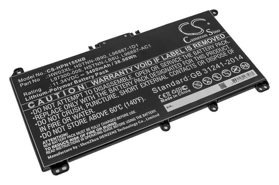 Аккумуляторная батарея CameronSino CS-HPN155NB для HP, 11.3V, 3.4 А·ч, 38.6Wh, черный, CS-HPN155NB