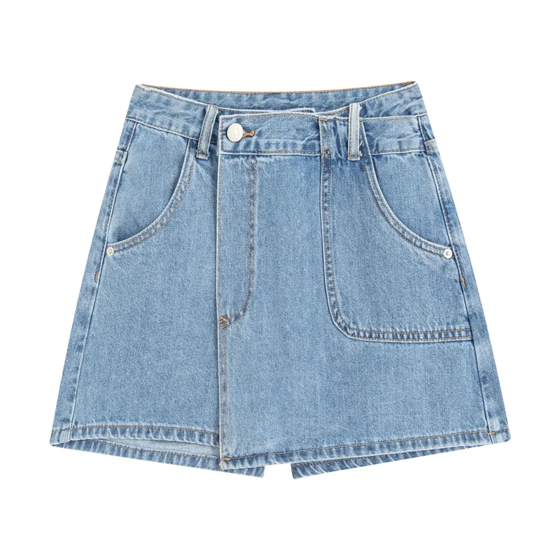 High-waisted 100% cotton thin denim shorts for women's 2022 blue culottes summer thin section new a-line shorts female J445