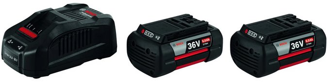 Li-ion, для строительного инструмента, совместим с Bosch, 36 В, 6 А·ч, с индикатором заряда, 2 аккумулятора в наборе, напряжение зарядного устройства: 14.4-36 В