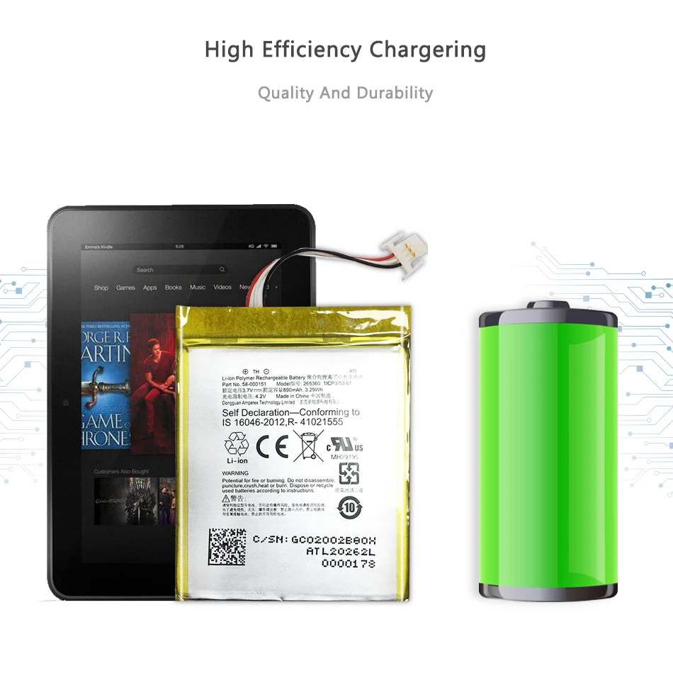 Аккумулятор 890 мАч для Amazon Kindle 7 Kindle7 7-го поколения 6 дюймов E-Reader 265360 265360-03 58-000151 WP63GW 58-000083 + номер для отслеживания