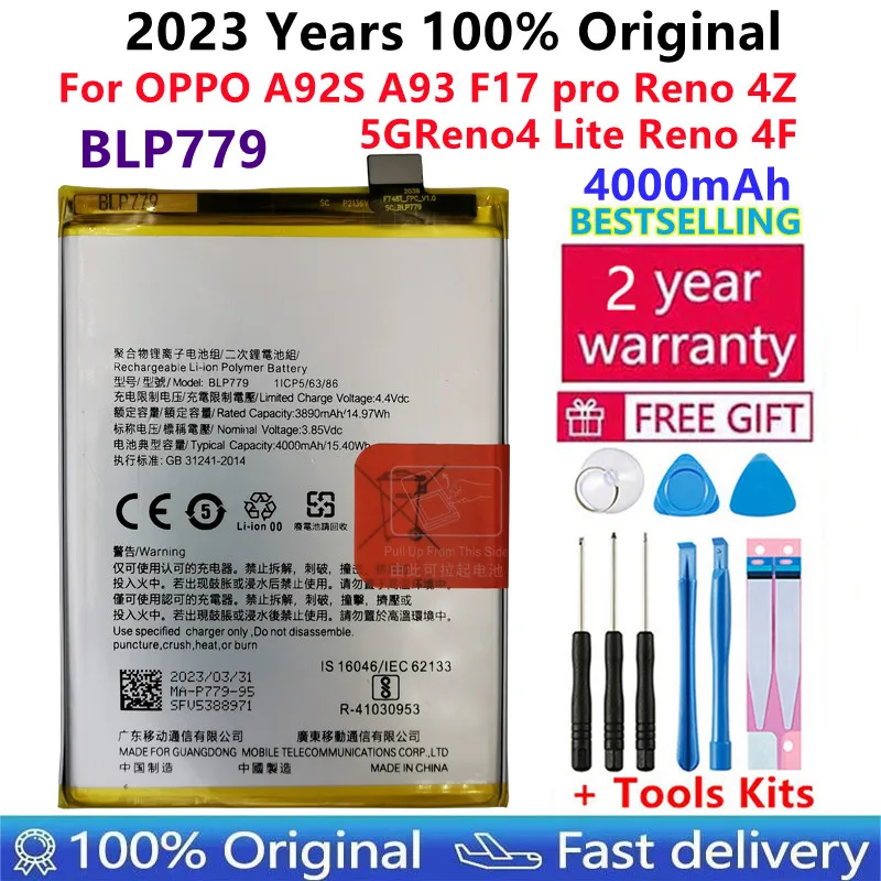 Аккумулятор BLP779 для OPPO Reno4 Lite/F17 Pro /A92s /A93 /RENO4F, оригинальная емкость, запасные части для ремонта, батареи для телефона, батарея