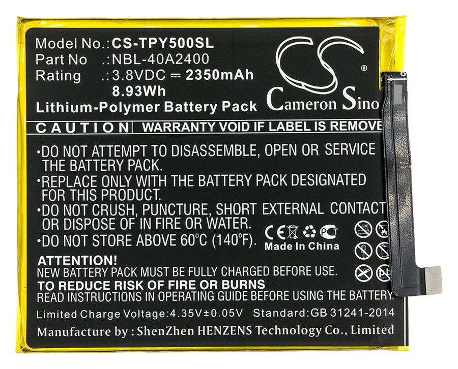 Аккумулятор CameronSino для Neffos Y5s Dual SIM, Y5s Dual SIM LTE AM, TP804C, TP804A, 3.8V, 2350mAh (CS-TPY500SL)