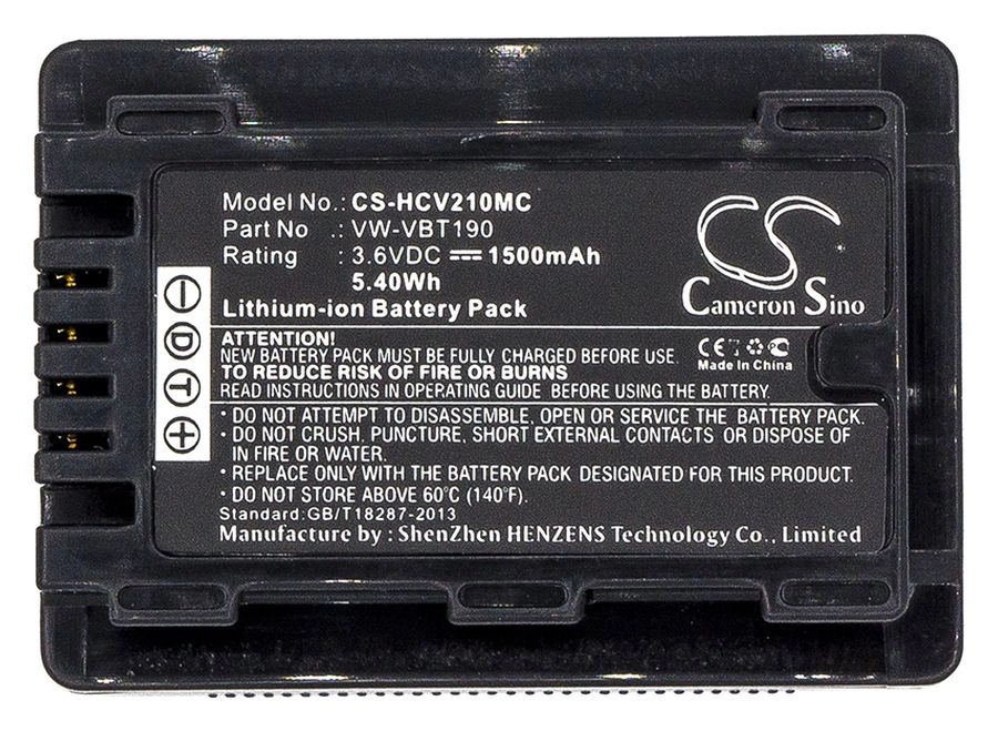 Аккумулятор CameronSino CS-HCV210MC/ VW-VBT190, 1500mAh, 3.6V для Panasonic HC-250EB, HC-550EB, HC-727EB, HC-750EB, HC-770EB, CS-HCV210MC