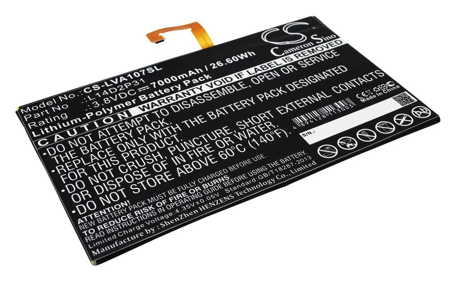 Аккумулятор CameronSino CS-LVA107SL, 3.8V, 7000mAh, Li-pol для Lenovo TAB 2 A10-70L, CS-LVA107SL