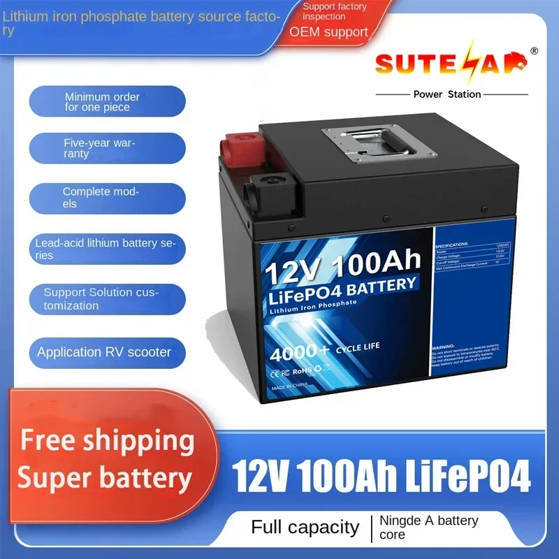 Аккумулятор LiFePO4 12 В, 100 Ач со встроенным литий-железо-фосфатным аккумулятором BMS, подходит для хранения солнечной энергии RV