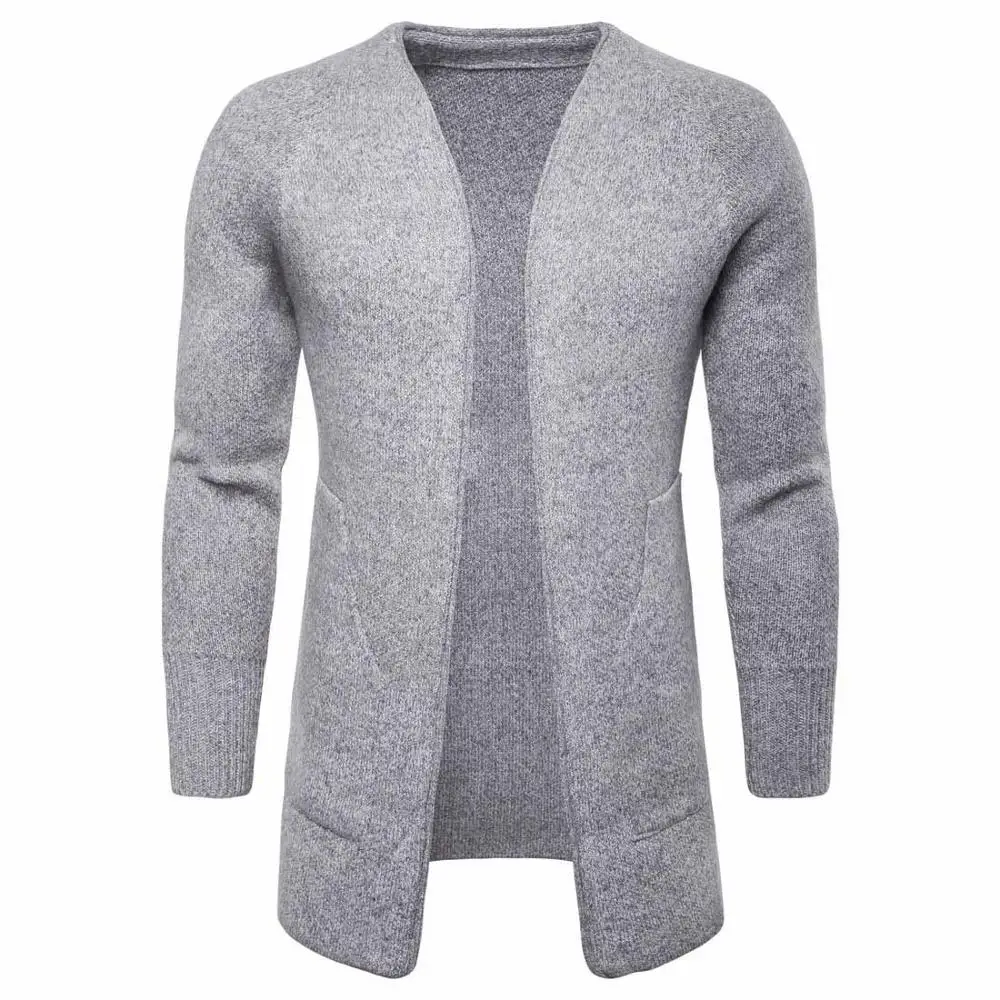 Spring autumn 2021 solid color no buckle V-neck Black grey coat gentleman new trendy men's cardigan cloak