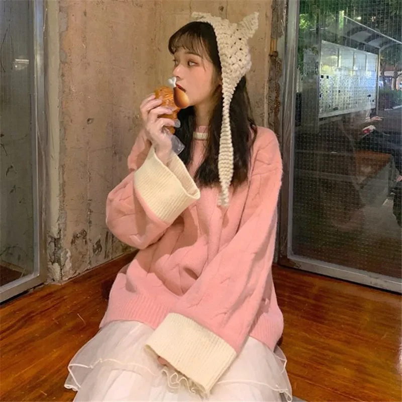 Lovely Autumn Loose Tops Female Twins Women Sweatshirt Pink Sweety Japan Lady Sweater Autumn Girls New Streetwear Sweater