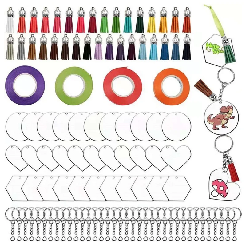 Акриловый брелок заготовок 148 шт. оптом прозрачные круглые круглой формы в форме сердца Форма акриловый диск DIY Kit с пустым Ленточки брелок
