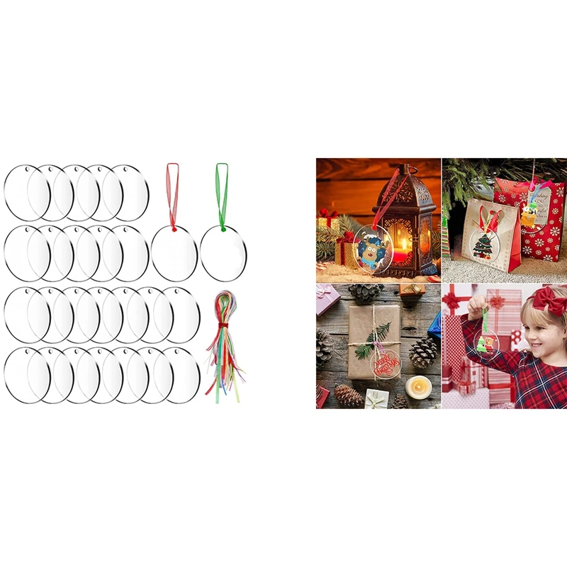 Акриловый брелок с цветной лентой, круглые рождественские украшения, пустой Рождественский подарок «сделай сам»