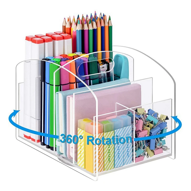 Акриловый держатель для ручек, органайзер для карандашей для детей, органайзер для творчества, органайзер для маркеров, вращающийся на 360 градусов держатель для карандашей