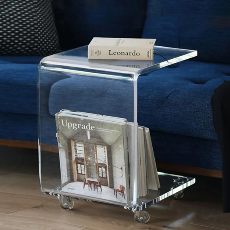 Акриловый журнальный столик, прозрачные мобильные прикроватные столики, многофункциональные современные аксессуары для гостиной