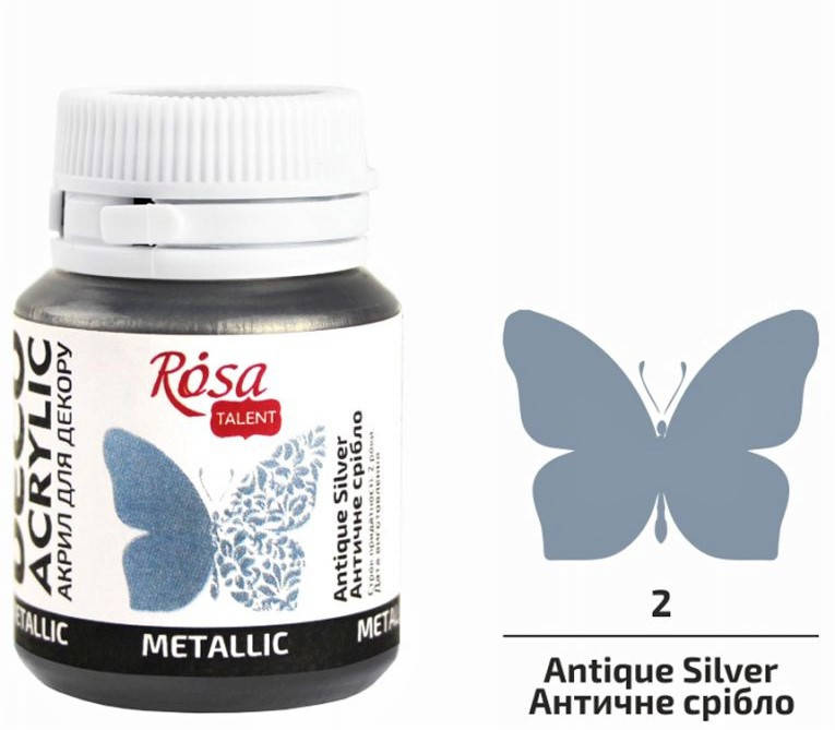 Акрил для декора, 52 Антическое серебро, металлик, 20 мл, ROSA TALENT