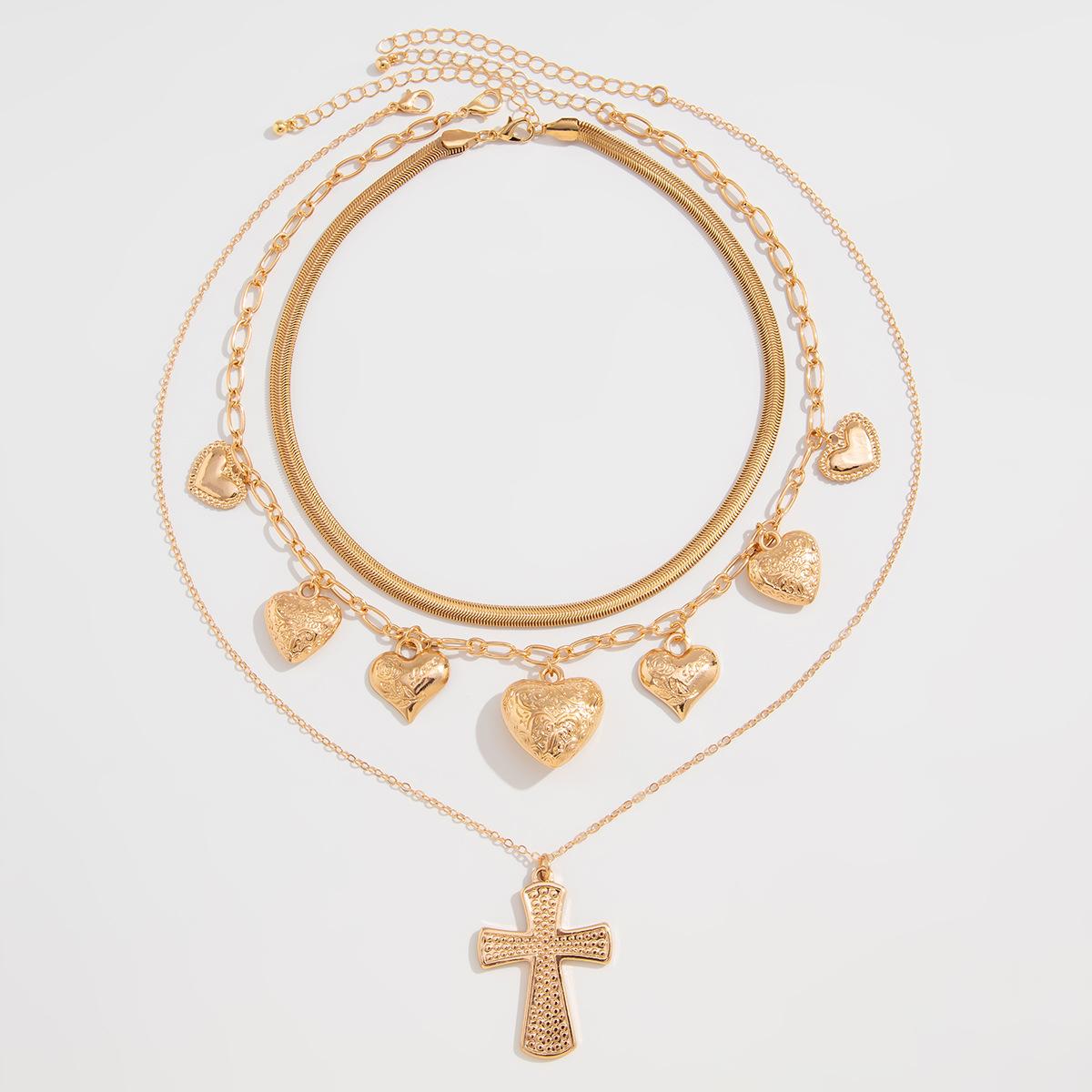 Аксессуары Панк Крест Любовь Кулон Ожерелье Личность Трехмерное Сердце Ключица Цепь Модное Ожерелье