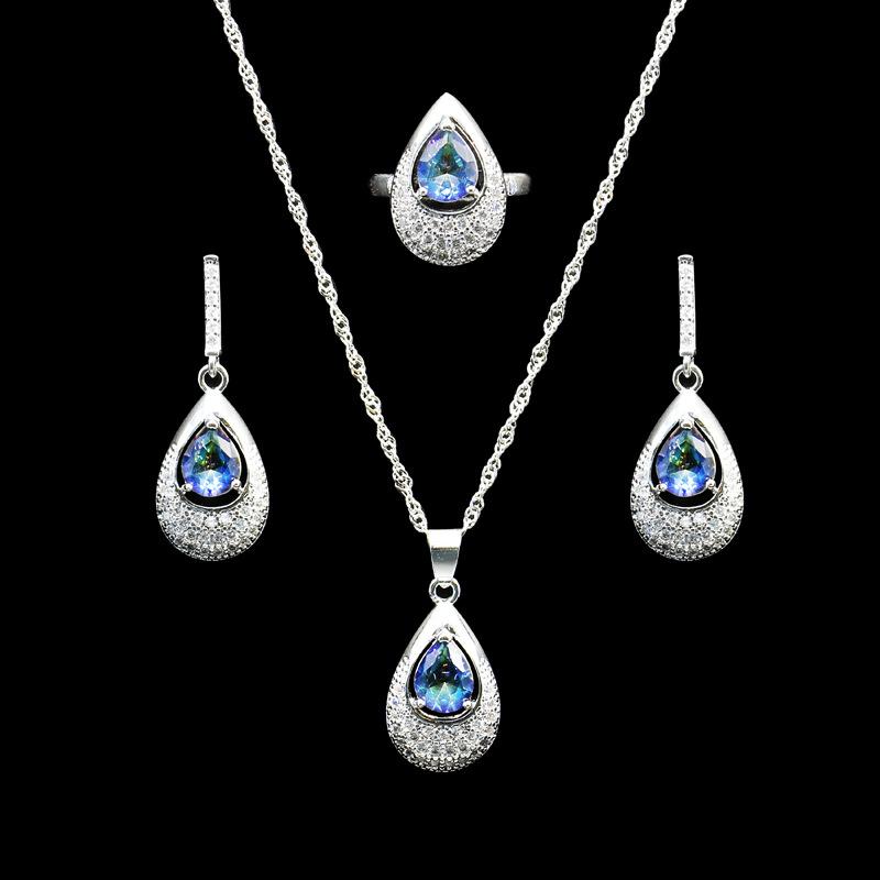 Аксессуары Темперамент Мода Металл Сверкающие Бриллианты Ювелирные Изделия Капля Воды Драгоценный Камень Ожерелье Кольцо Серьги Комплект Size 8 ring three-piece set