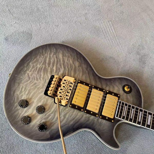 custom shop flame electric guitar.3 pickups ebony fingerboard mahogany body gold color hardware