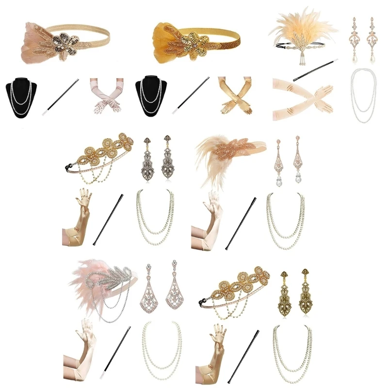 Аксессуары для женщин, серьги в стиле Гэтсби, повязка на голову, перчатки, ожерелье, Прямая поставка
