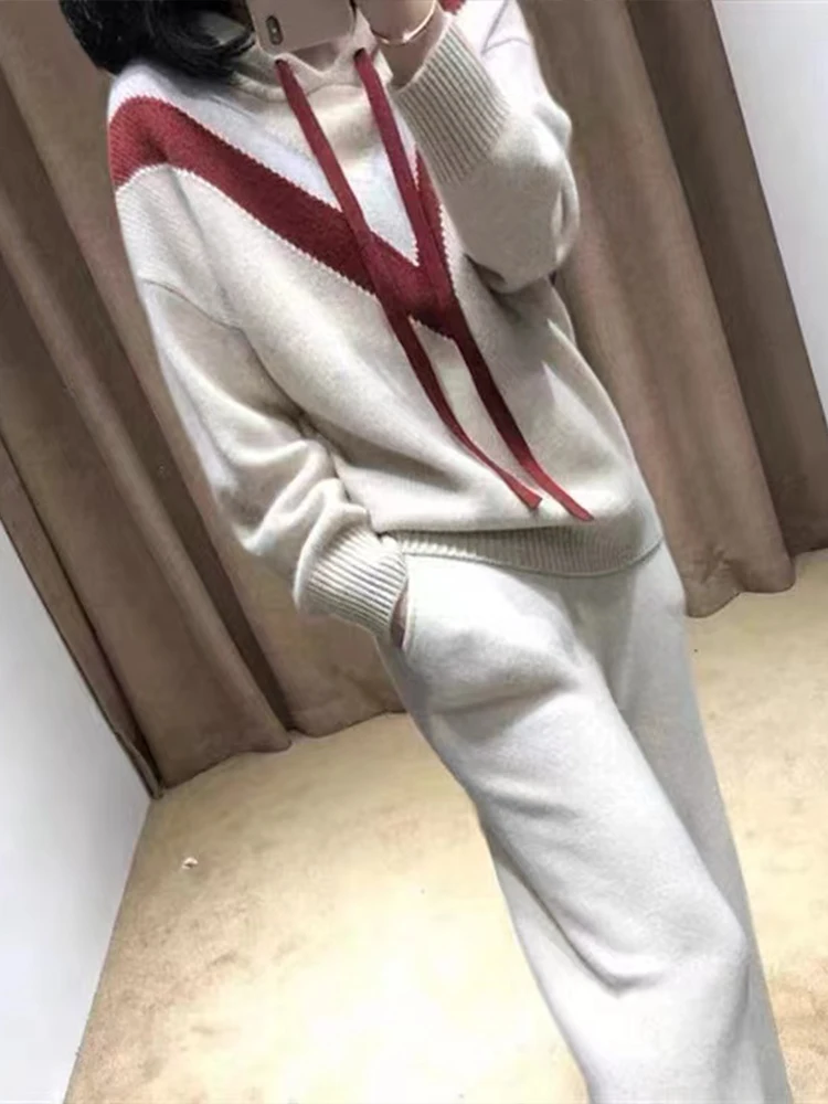 Повседневный свободный Трикотажный свитер с капюшоном и брюки с широкими штанинами, комплект из двух предметов, осень 2024, Новая модная женская одежда