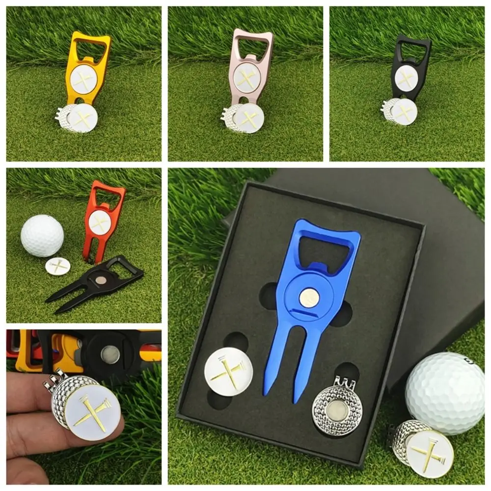 Аксессуары для набора аксессуаров для гольфа, зажим-маркер, вилка для мяча для гольфа, металлические многофункциональные зажимы для маркера для мяча для гольфа