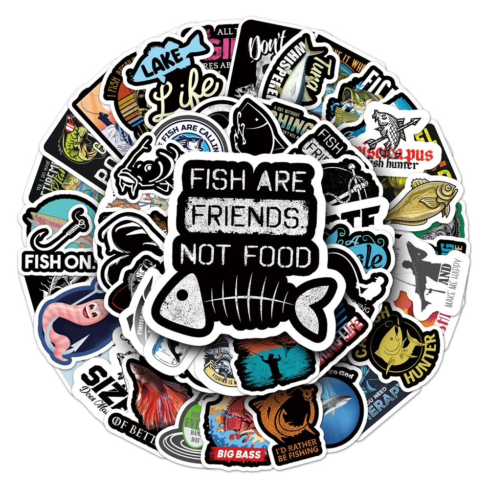 10/30/50PCS Fishing Series Cartoon Graffiti Waterproof Sticker Personality Creative Trend Decal Skateboard GuitarHelmetWholesale