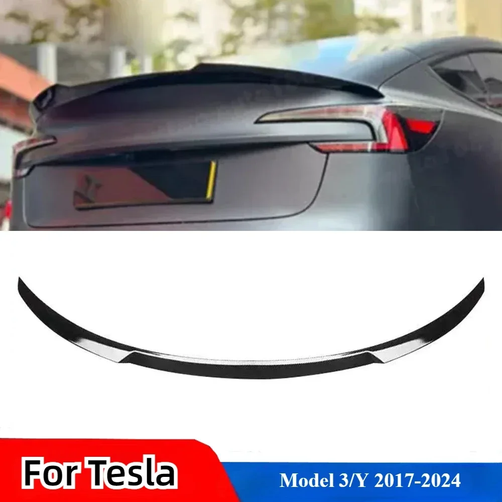For Tesla Model 3/Y 2017-NOW Accessories Model3 Highland 2024 HOT ModelY Spoiler Rear Door Tail Trunk Wing ABS Carbon Fiber Look