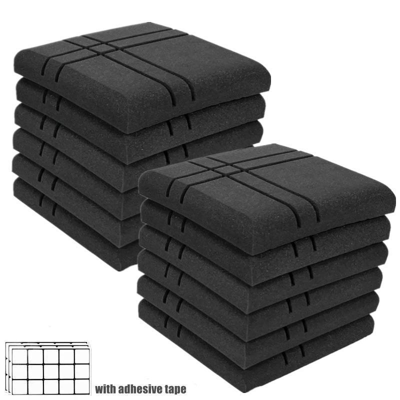 Акустические пенопластовые панели 12 x 12 x 2 Звукопоглощающий настенный коврик для студии KTV Drun Room Звукоизоляционная пенопластовая губка с клейкими лентами 10Pcs чёрный