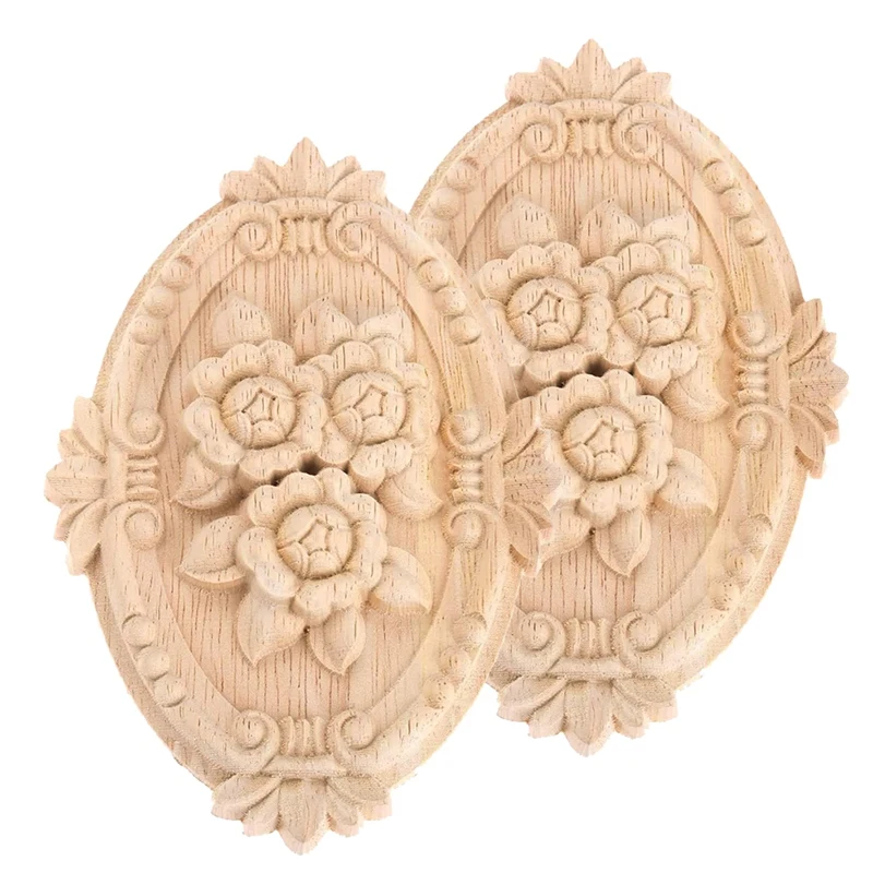 Акция! 2 шт., деревянные резная фотообои, неокрашенные украшения для мебели, неовальные узоры 21x15 см