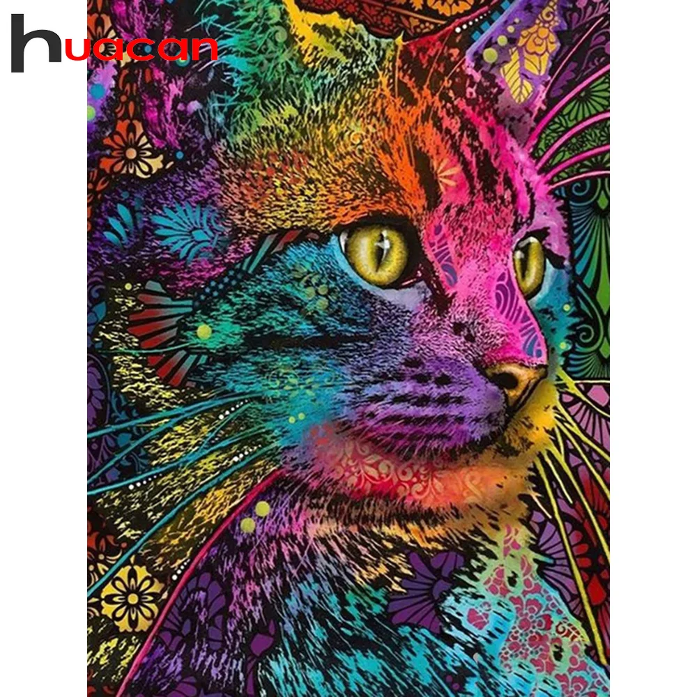 Алмазная вышивка Huacan с кошкой, картина с животными, полноразмерная/круглая мозаика, вышивка, картины для дома