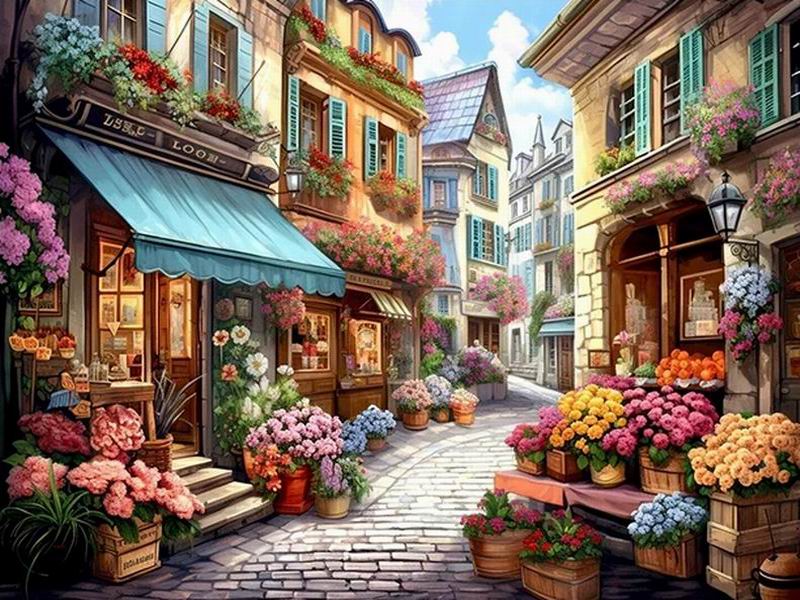 Алмазная живопись Новая коллекция 2024 Уличный пейзаж Цветочный магазин Diy Полный квадратный круглый дрель Стразы Вышивка Мозаика Наборы для вышивки крестом Round drill 30x40cm