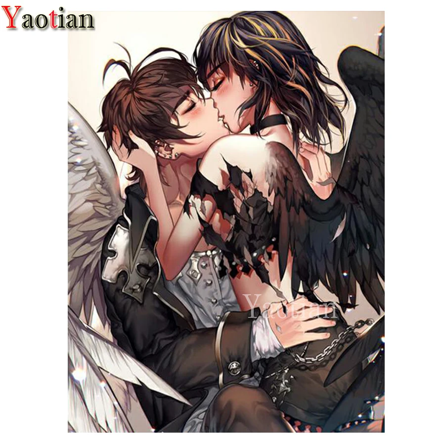 Алмазная живопись «сделай сам», Романтический Ангел, поцелуй, стразы, вышивка 5D, алмазная вышивка, квадратная и круглая Вышивка крестиком, Д...