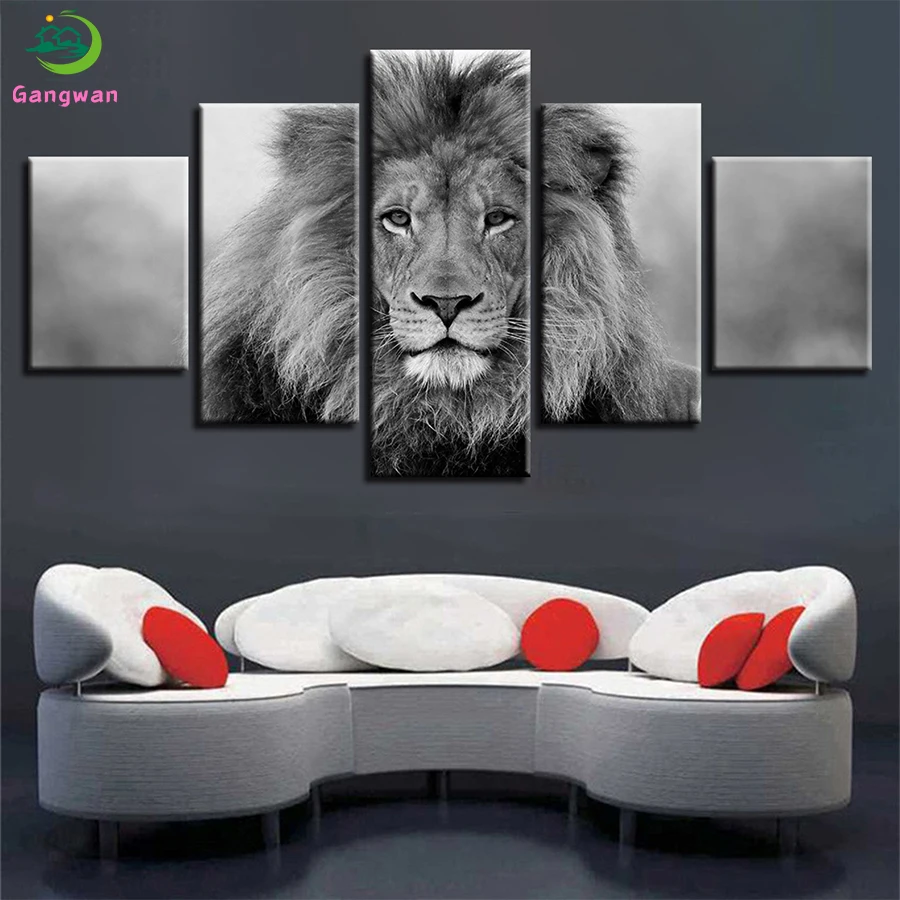 Алмазная живопись «сделай сам», черно-белое животное, стразы льва, Алмазная мозаика, вышивка крестиком, ручная работа, Hobby5pcs