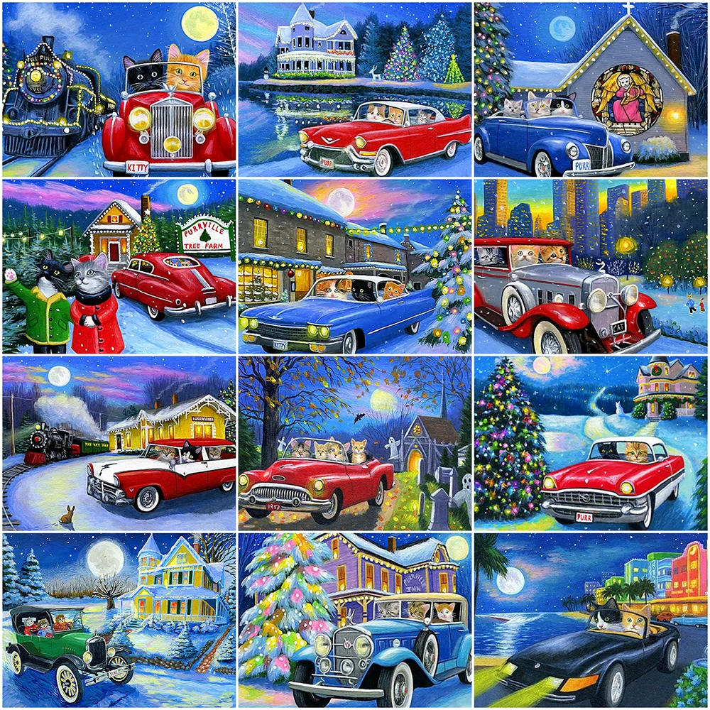 Алмазная живопись с пейзажем Huacan, 5d «сделай сам», вышивка крестиком, зимняя мозаика с кошкой, украшение для спальни