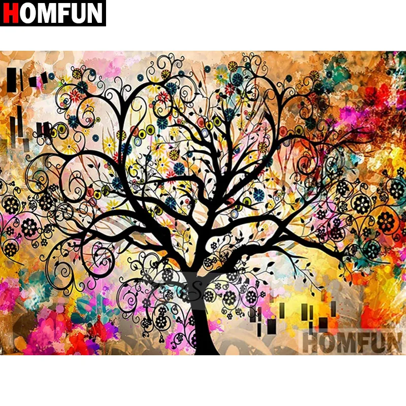 Алмазная живопись HOMFUN «деревье», алмазная 5D Вышивка крестиком, мозаика из квадратных и круглых страз, украшение для дома