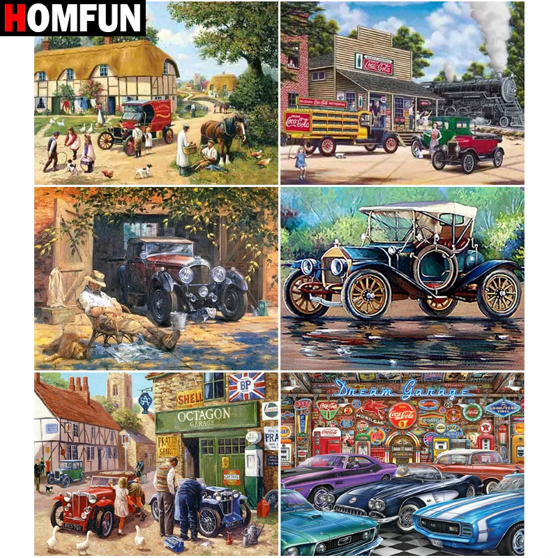 Алмазная живопись HOMFUN, полноразмерная/круглая вышивка с мотивом пейзажа Autobot, 5D Стразы