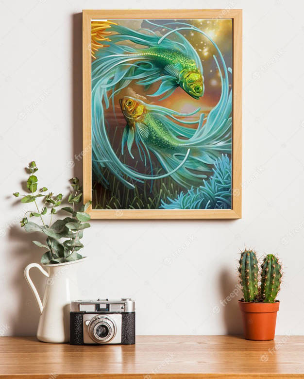 Алмазная мозаика "Рыбы", картина стразами. Матовая. 20*30 см