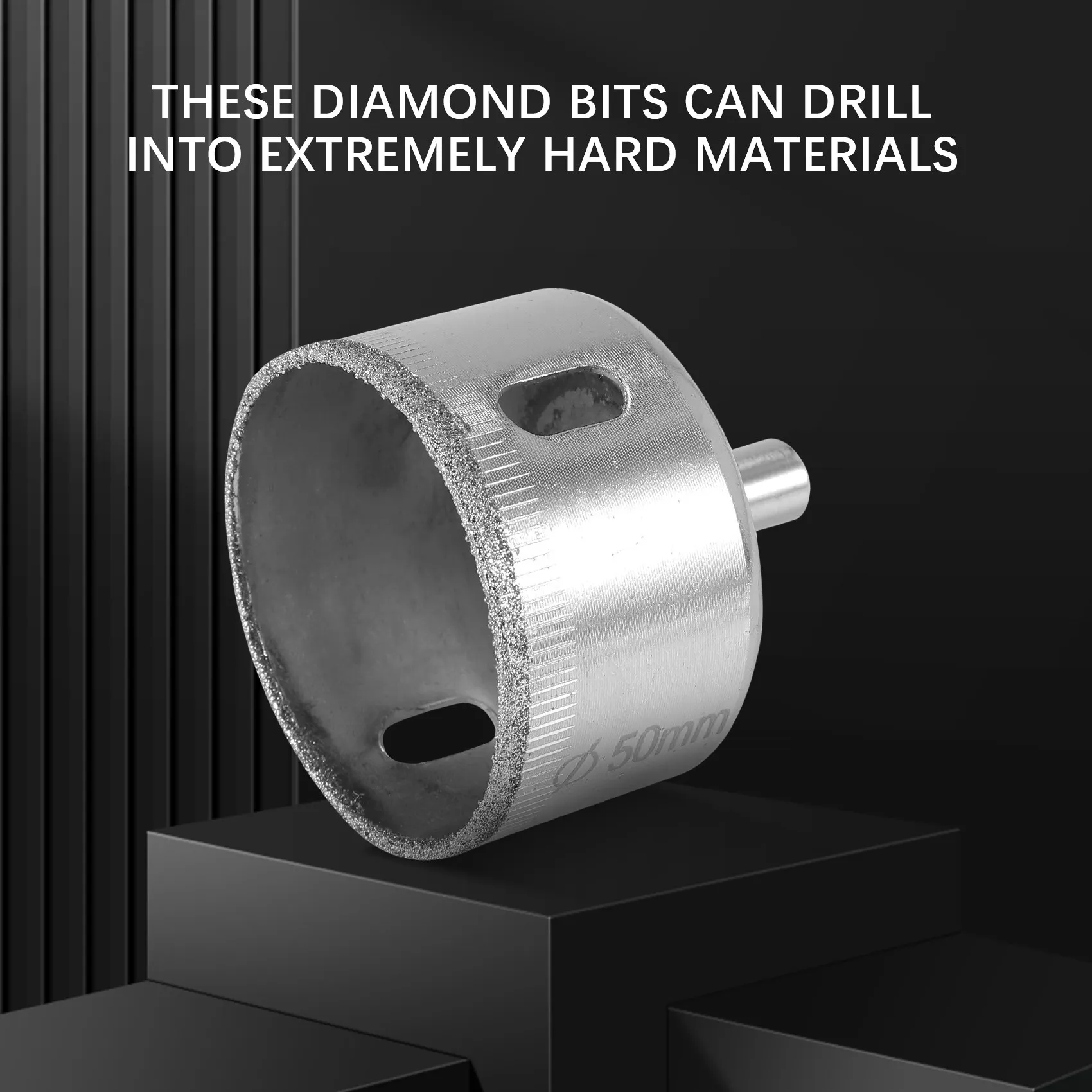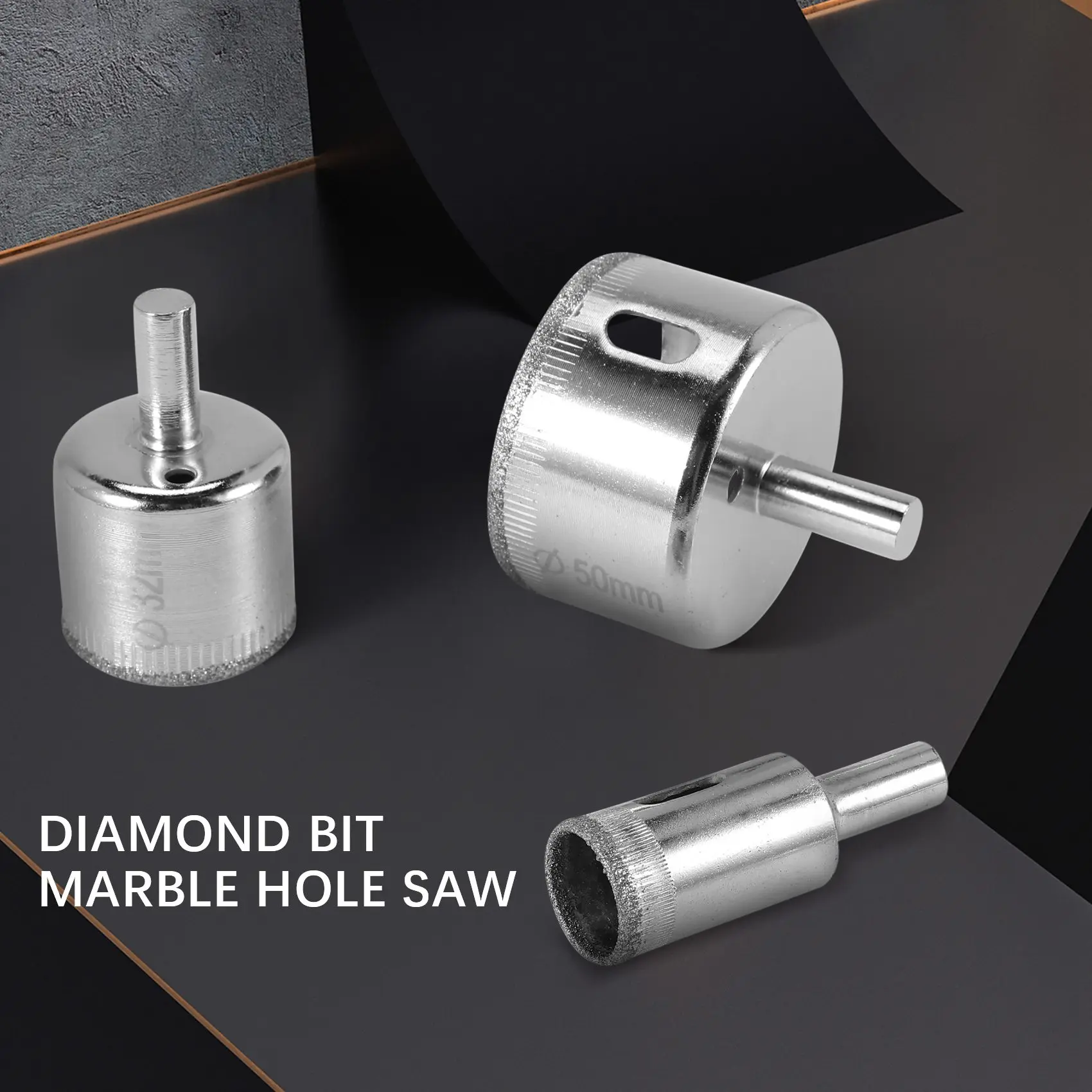Алмазная пила для отверстий, набор из 10 насадок 3-50 мм, для резки плитки, керамики, мрамора, стекла