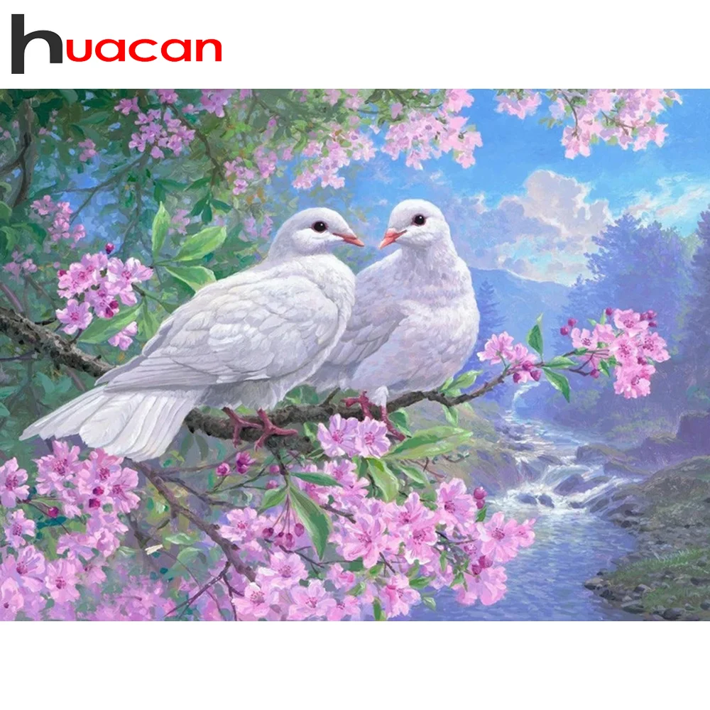 Алмазная 5D Вышивка Huacan с голубями, Набор для творчества «сделай сам», мозаика, вышивка крестиком, творческие хобби