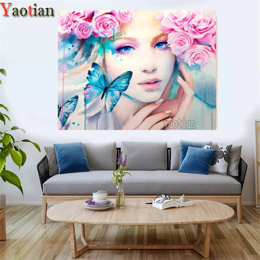 Алмазная 5D картина «Девочка, Роза», «сделай сам», цветок, бабочка, полная выкладка, квадратная вышивка, мозаика, вышивка, картина стразы, Деко...