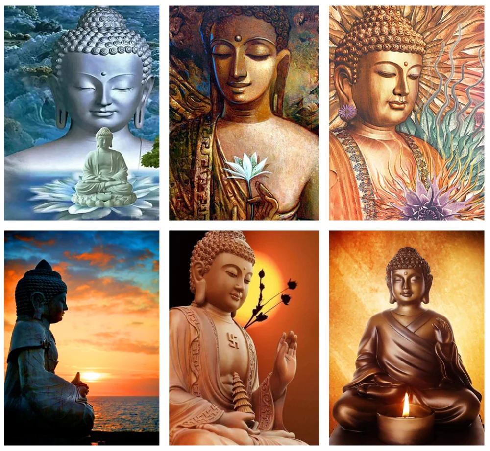 Алмазная 5D картина «сделай сам», Набор для вышивки крестиком религиозного Будды, круглая вышивка, мозаика для творчества, домашний Настенны...