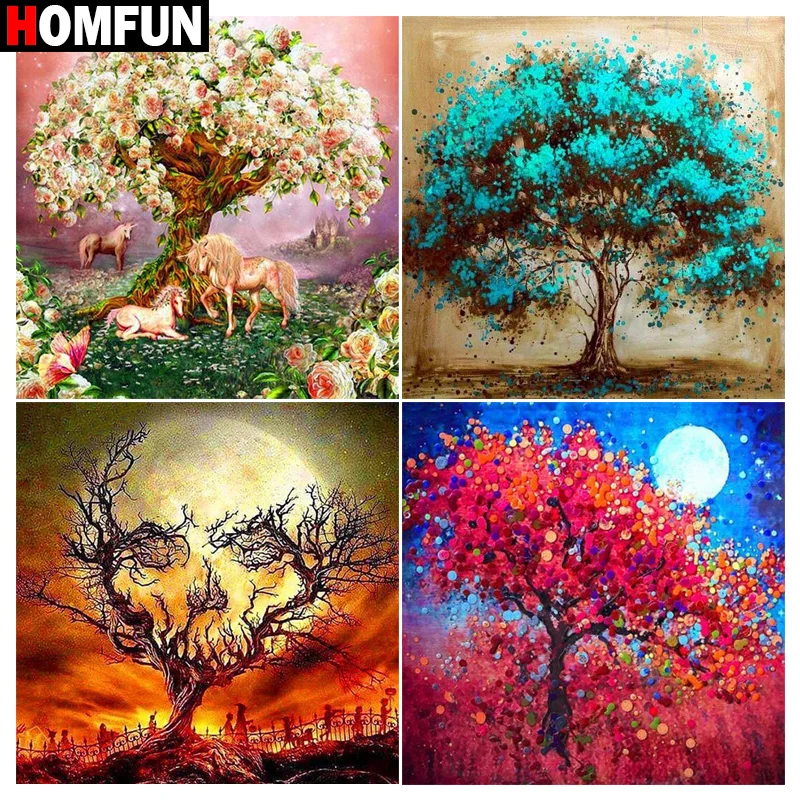 Алмазная 5D картина HOMFUN «сделай сам», полноразмерная вышивка крестиком, «деревья, луна», ландшафт, домашний декор, подарок