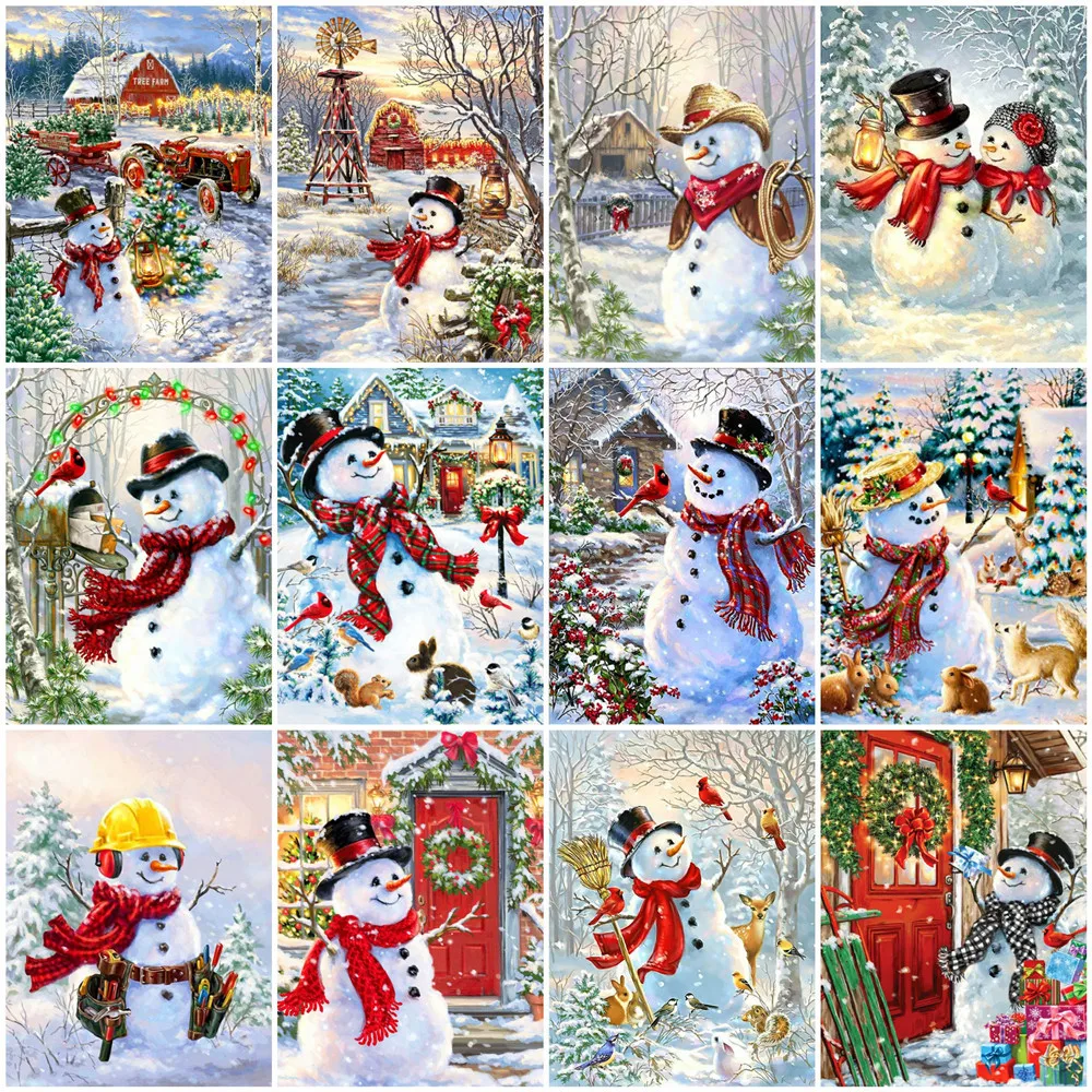 Алмазная 5D картина Huacan, вышивка снеговика, зимняя мозаика, вышивка крестиком, мультяшный подарок на Рождество, украшение для дома