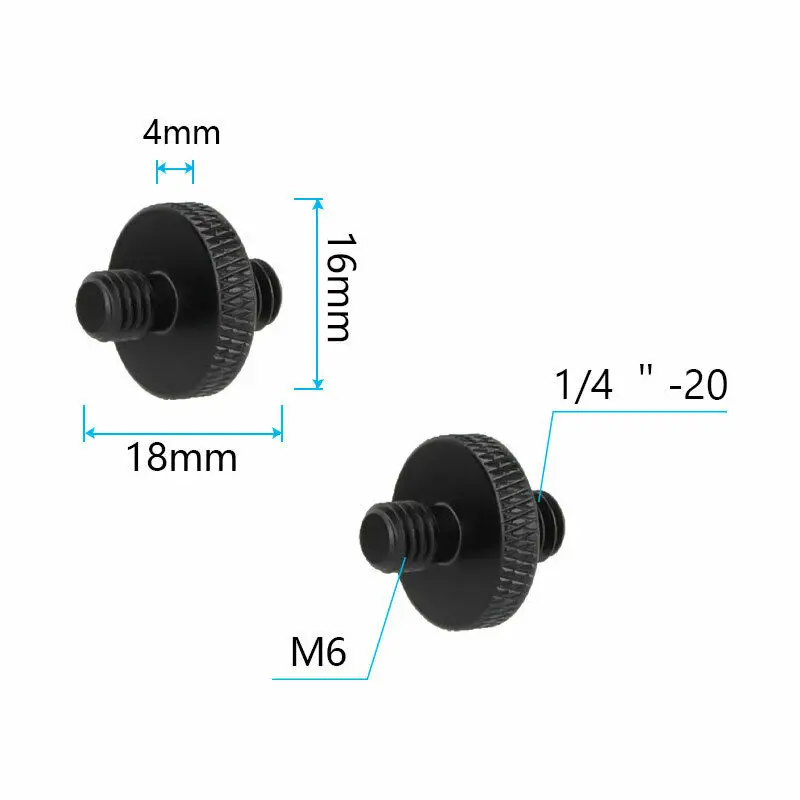 Алюминиевый двухсторонний переходник с наружной резьбы M6 на наружную резьбу 1/4-20, 2 шт.