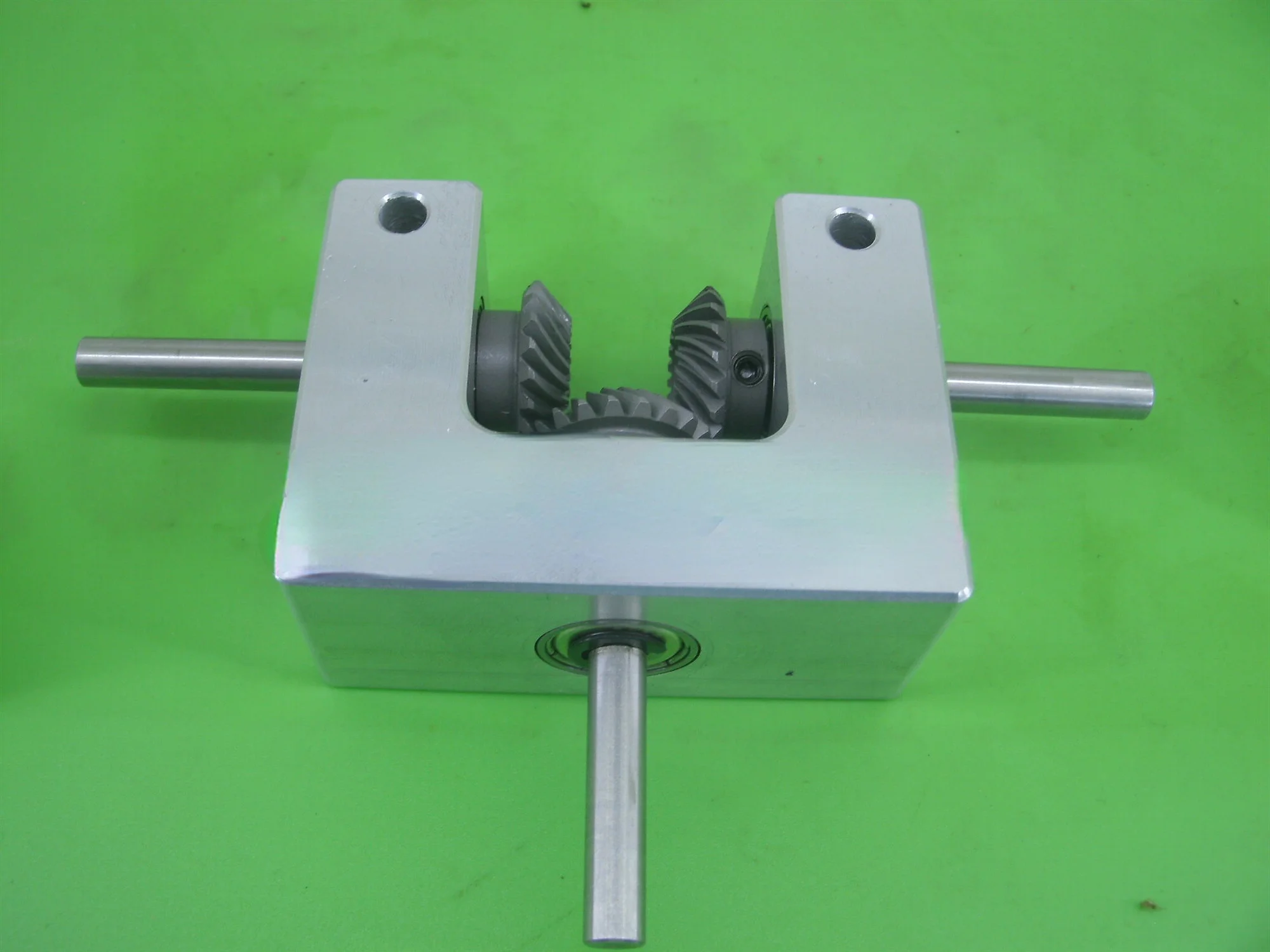 Алюминиевый корпус коаксиального редуктора с двумя выходными валами 90 градусов 1:1 вперед и назад