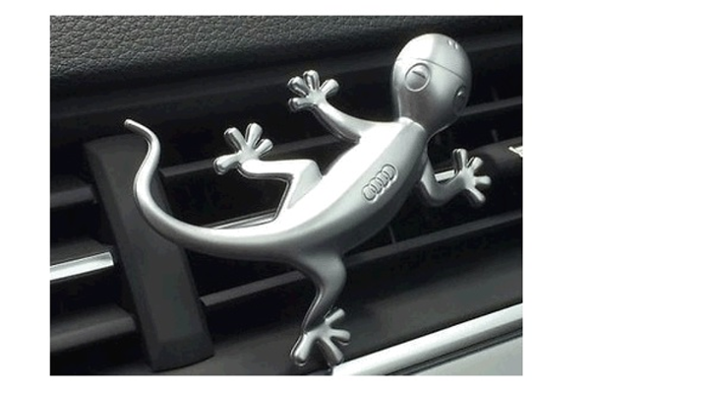Алюмінієва фігурка гекона - традиційного символу легендарного повного приводу quattro! Поставляється разом зі спеціальною кліпсою для кріплення між планками вентиляційних отворів. Поставляється в подарунковій коробці. Чудовий подарунок для фаната Audi!