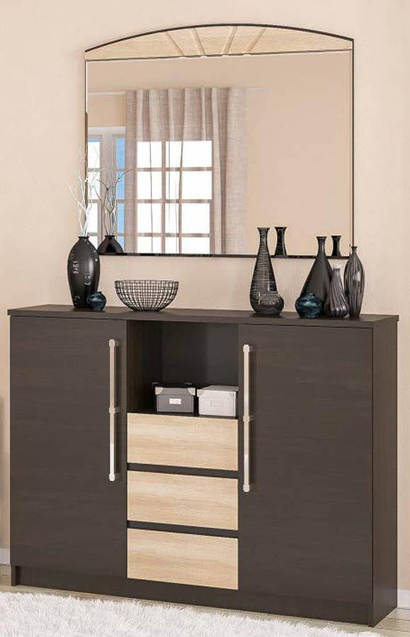 Аляска Комод 2Д3Ш + Зеркало МЕБЕЛЬ СЕРВИС Венге темный + Дуб самоа
