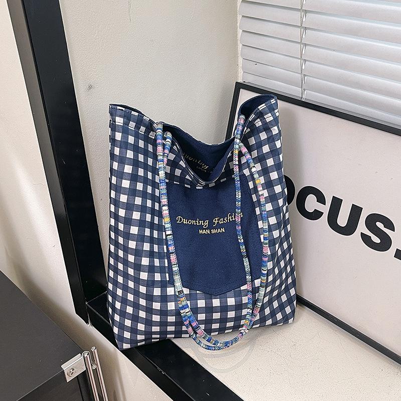 Американская двусторонняя сумка клетчатая холщовая сумка женская сумка-тоут для поездок на работу ретро контрастная сумка весенняя новая сумка для родителей и детей синий