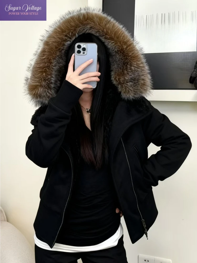 Американская ретро модная уютная стеганая куртка с капюшоном и воротником из искусственного меха, женская зимняя теплая толстая парка на молнии, плюшевая повседневная верхняя одежда