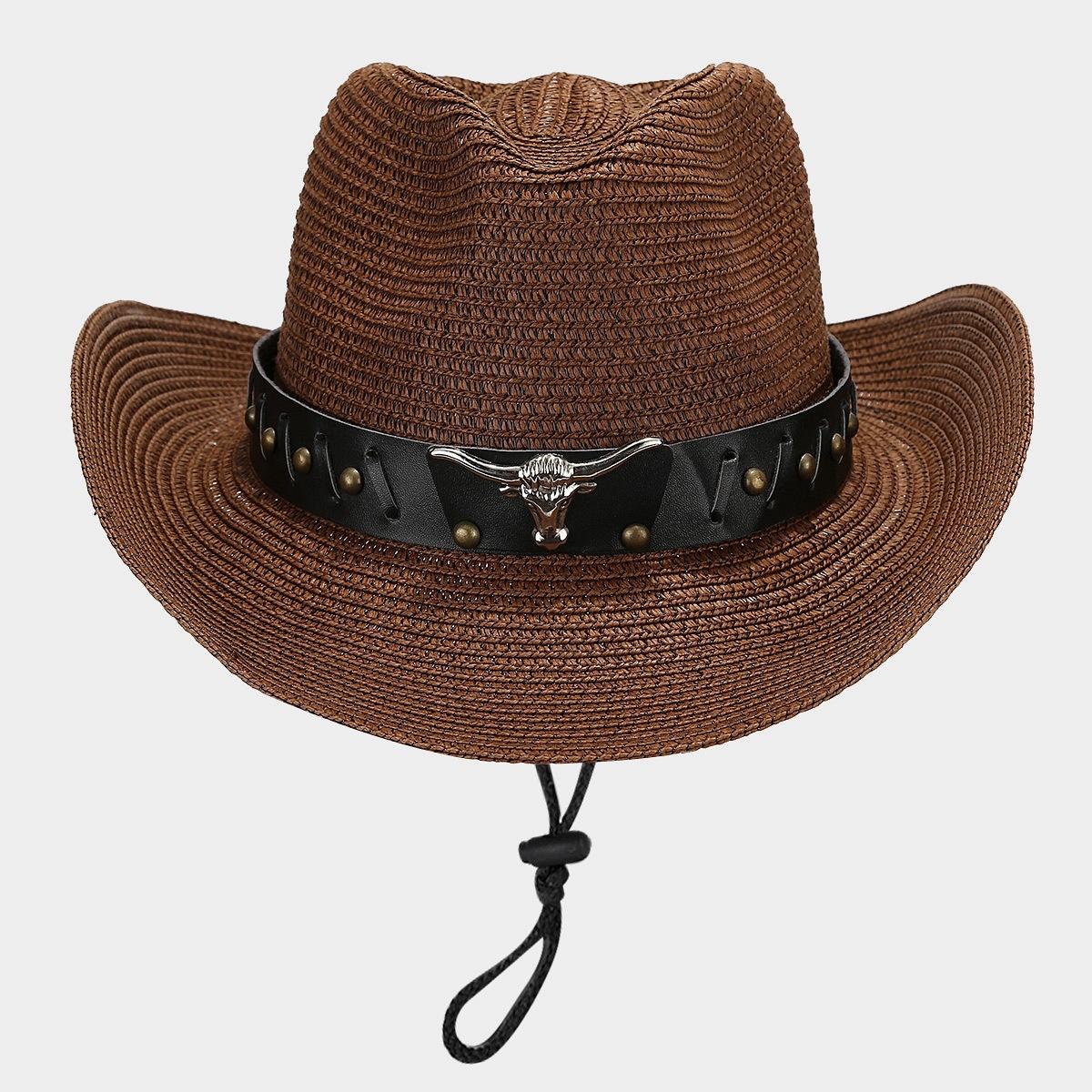 Американская ретро-соломенная ковбойская шляпа с головой быка, мужская ретро-повседневная шляпа от солнца, женская ветрозащитная дышащая панама one size темно-коричневого