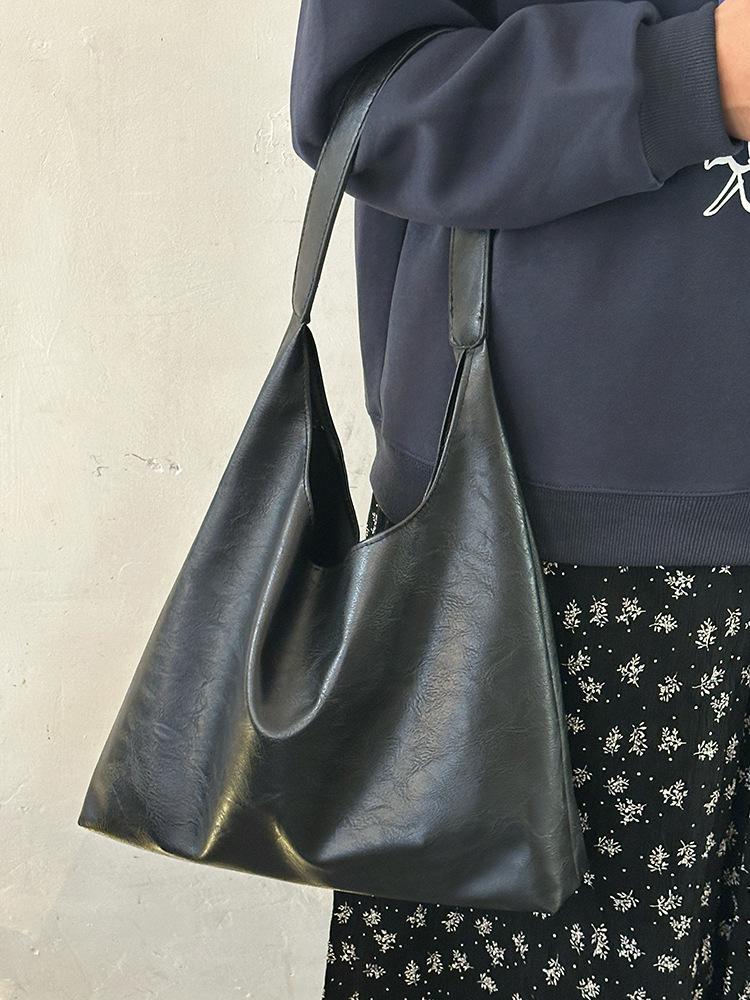Американская ретро-сумка-тоут в стиле колледжа, новый класс мягкой кожи, продвинутая сумка на плечо для通勤, большая вместимость, сумка для мамы и ребенка чёрный