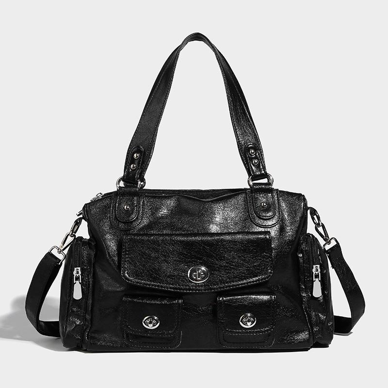 Американская сумка-тоут в стиле локомотива большой вместимости, модная осенне-зимняя, универсальная сумка через плечо для подмышки чёрный