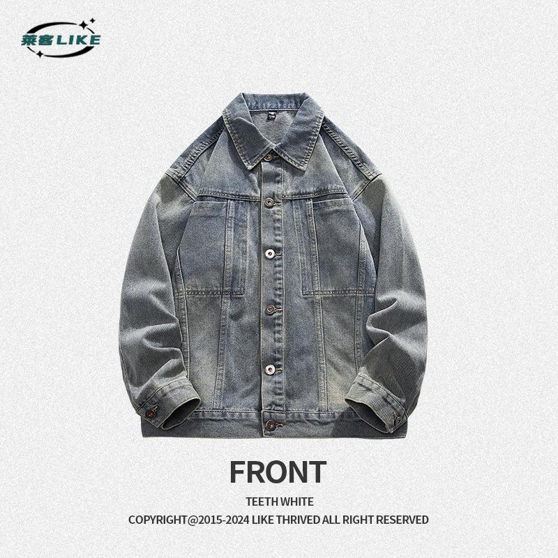 Американская уличная ретро-джинсовая куртка мужская куртка мужская высококачественная стираная свободная и универсальная повседневная джинсовая куртка 5XL красный